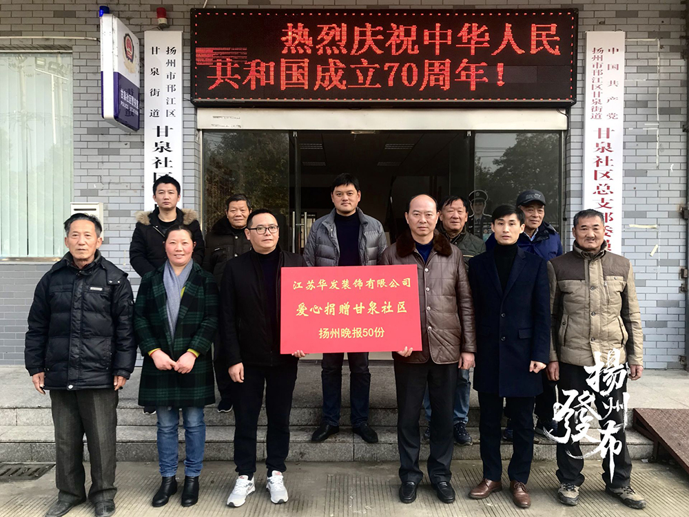 12月27日上午,公司副总经理赵宏贵代表华发公司,前往邗江区甘泉社区,与扬州报业传媒集团联合向社区50名老党员捐赠了2020年度扬州报业传媒集团旗下报纸。