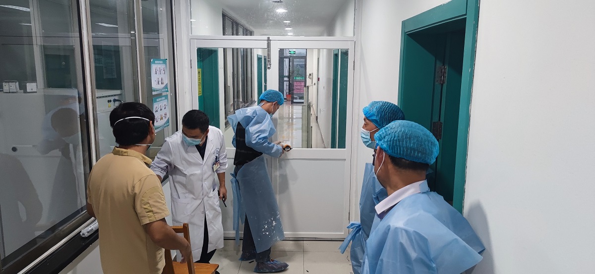 12日晚,公司又接到市三院4号楼和1号楼部分区域的改造任务,由于疫情持续蔓延,院方拟将4号楼作为收治新冠病人的备用病房,14日必须具备使用条件。公司连夜确定了施工方案,动用多方资源千方百计组织人员和材料到位。13日一早,10名施工人员开始对4号楼的污染区隔断、清洁区、污染区打胶封闭,并拆除三、四层原建筑的隔断。另外,在1号楼检验室施工时,为保障安全,施工人员们需身着隔离衣,工人们忍着闷热,争分夺秒作战,对1号楼检验室走道清洁区进行玻璃隔断、走道窗打胶封闭。13日晚交付任务提前完成。