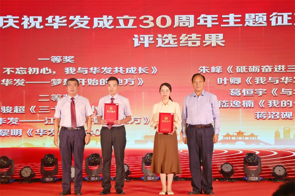 接下来的颁奖环节,由在座领导依次颁发了华发公司30周年征文奖、优秀员工、优秀团队、特别贡献奖 ,感谢三十年来辛勤工作的优秀员工和为华发发展作出突出贡献的优秀团队和个人。正因为有广大员工的辛勤付出,华发才可以坚定不移地向着目标迈进。