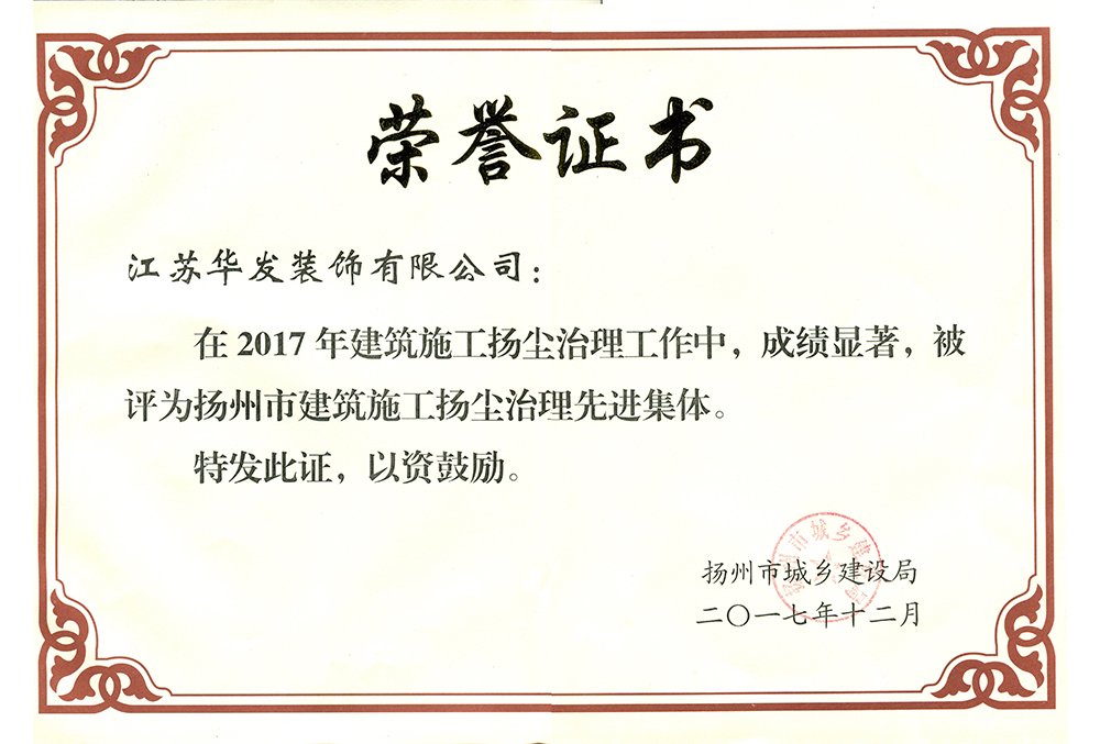 公司获评“扬州市建筑施工扬尘治理先进集体”