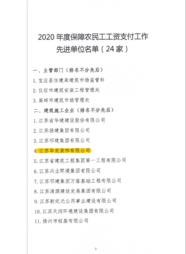 2020年12月30日,扬州市住房和城乡建设局发文表彰2020年度全市建设领域农民工工资支付保障工作先进单位,我司作为唯一的装饰行业企业荣获该项称号。