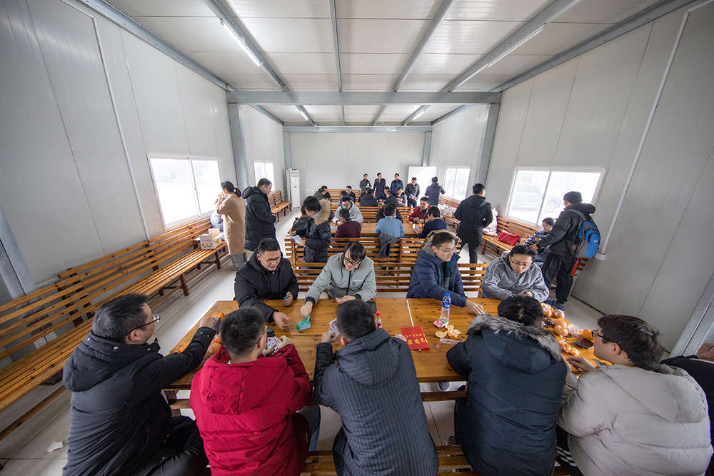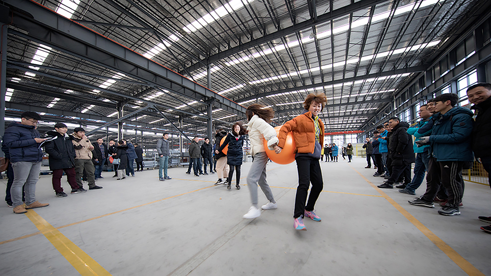 下午,天气寒冷且出现降雪,但恶劣的天气依然阻挡不了大家参赛的热情,纷纷赶到下一个活动现场——华发生产基地。作为每年的传统项目,拔河比赛率先亮相,分为A、B、C、D四组。随着裁判长李浩炜的一声哨响,A、B两队最先开始了较量,周围啦啦队声势浩大的加油声此起彼伏。经过激烈的淘汰赛,以王学金、张全、沙宝忠等9人组成的A队一直延续了比赛一开始所展现的毅力和拼劲,一路拼到最后,夺得冠军。