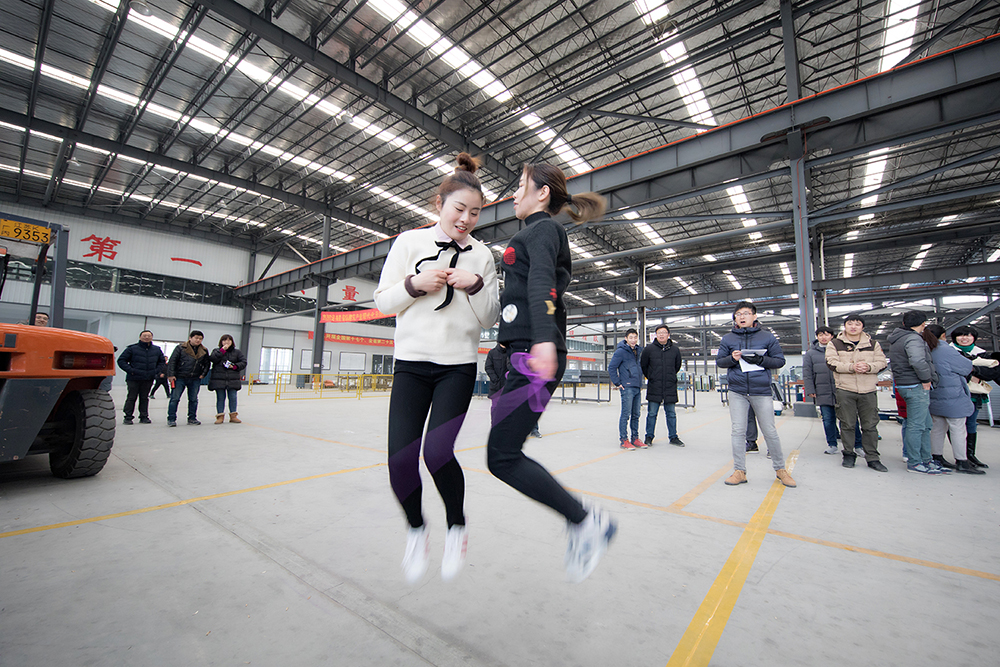 跳绳比赛要求两人组队,一同跑到指定地点,双人同时跳绳至20个后再折返,耗时最短的获胜。规则看似简单,但任何一个环节处理不好都会直接影响最后的比赛结果。比如有些男队组合跳绳时步伐不一致导致中断,有些女队组合解开绳子时耗时过多。最终,由武志峰、张天杰组成的默契组合以17秒31获得第一,汪琴、吴晶晶组合屈居第二。