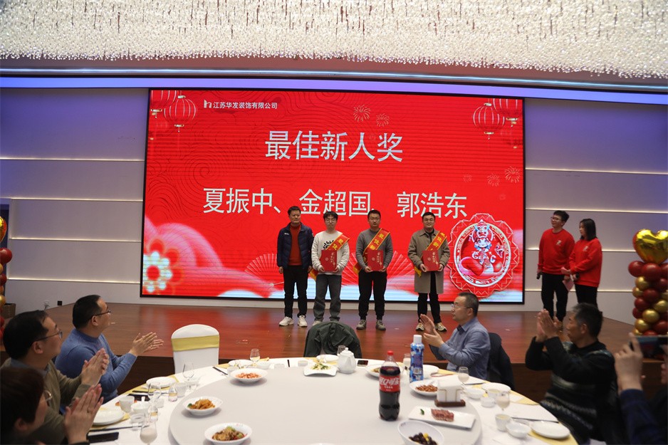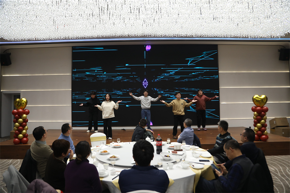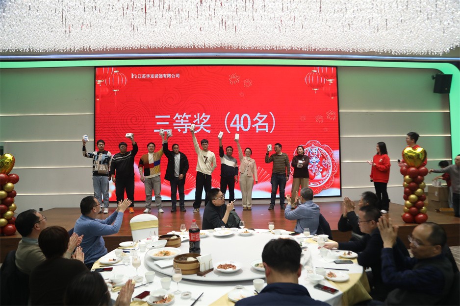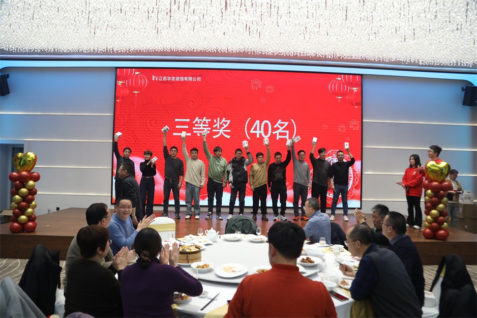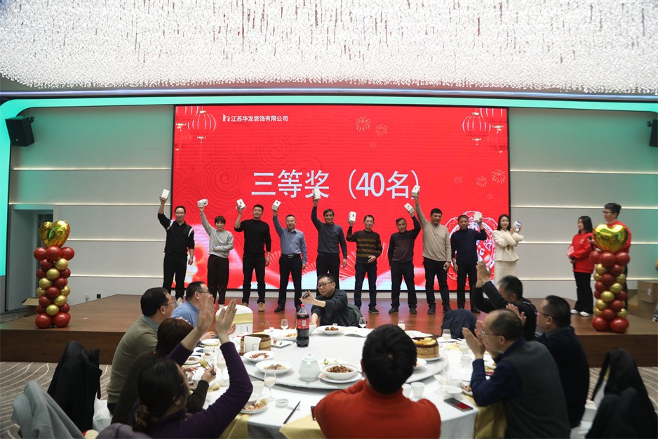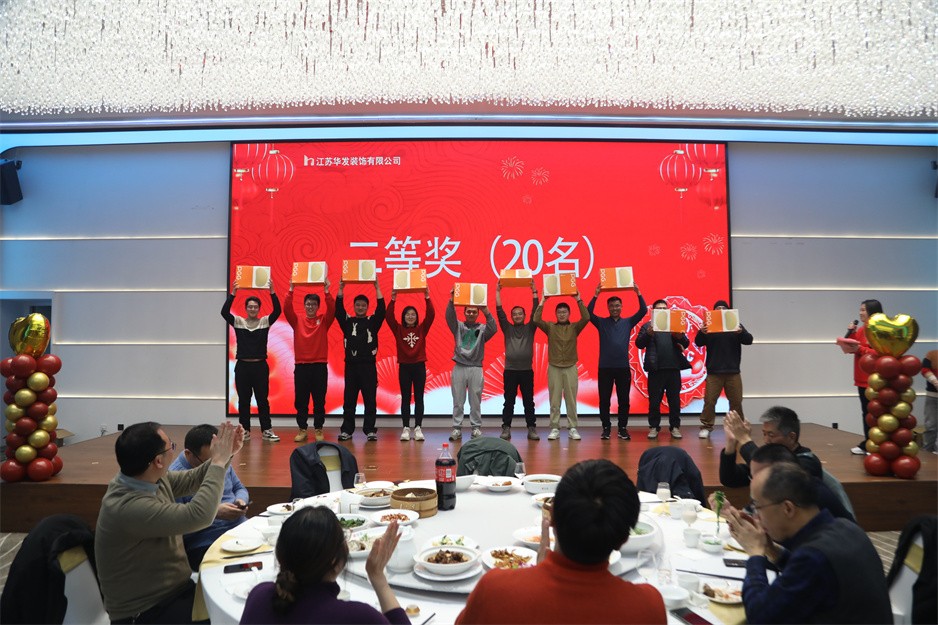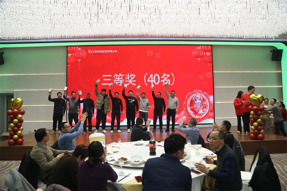 接下来的表演节目精彩纷呈,华发新人们带来的活力满满的开场舞,传统节目《三句半》的沿袭,更有令在场所有观众捧腹大笑的反串演唱《渡情》,先进工作者代表带来的合唱《我们都是追梦人》等节目让现场充满了欢乐祥和的气氛。还有团建游戏、红包派送和抽奖等节目穿插其中,尤其是抽奖环节中一、二、三等奖的分别产生,把现场的气氛烘托到高潮。