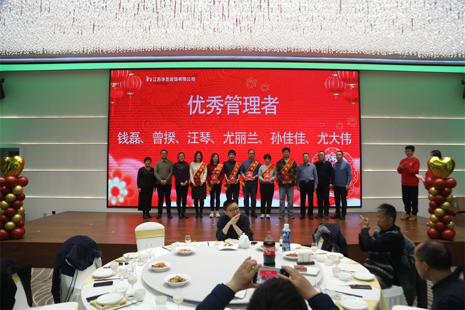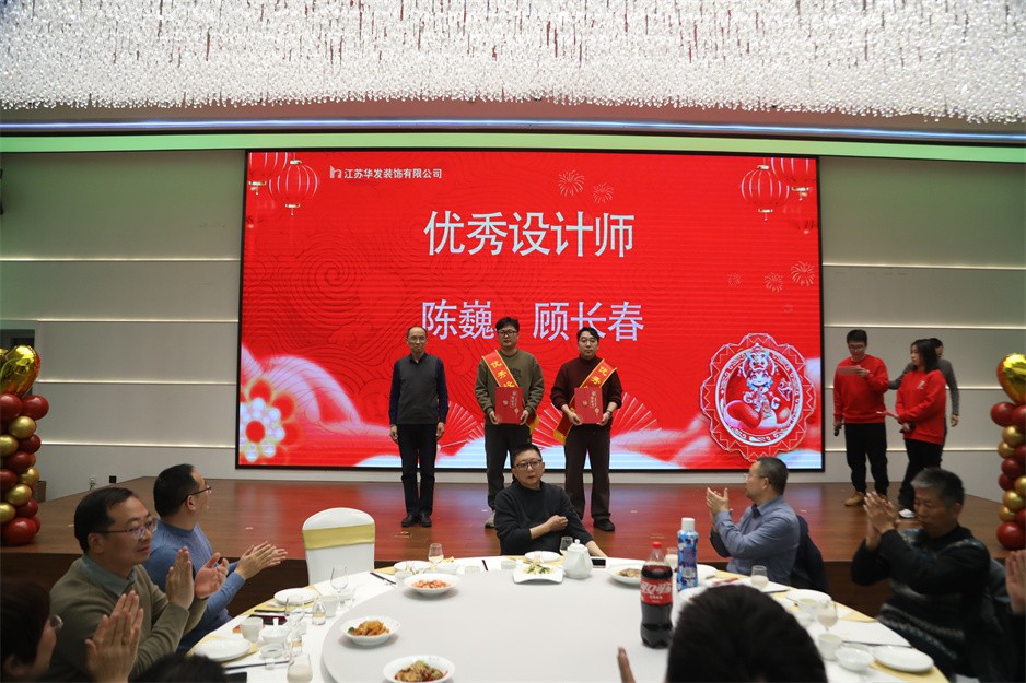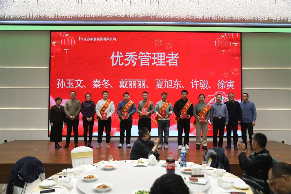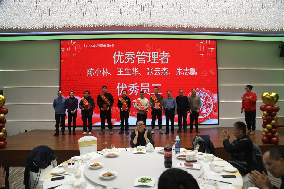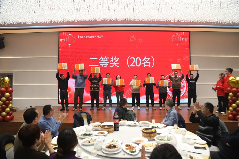 新春团拜会首先以华发公司董事长耿杰所致的新年贺词拉开了序幕,耿董事长总结了2024年面对经济下行的大环境华发公司仍然取得的较好业绩:全年产值保持上年同期水平,利润再创历史新高,创詹天佑住宅金奖1项、琼花杯14项;获得省标化工地2项;再获发明专利1项、实用新型专利2项、省级工法3项;蝉联江苏省优秀装饰企业、扬州市建筑业先进企业、扬州市装饰行业优秀企业等荣誉。面对已经到来的2025年,耿董事长希望大家都能以饱满的热情和积极的态度投入到各自的工作中,增强忧患意识、提升工作能力、主动担当作为,拒绝“躺平”;咬定青山不放松,脚踏实地加油干,努力书写华发公司更美的篇章!