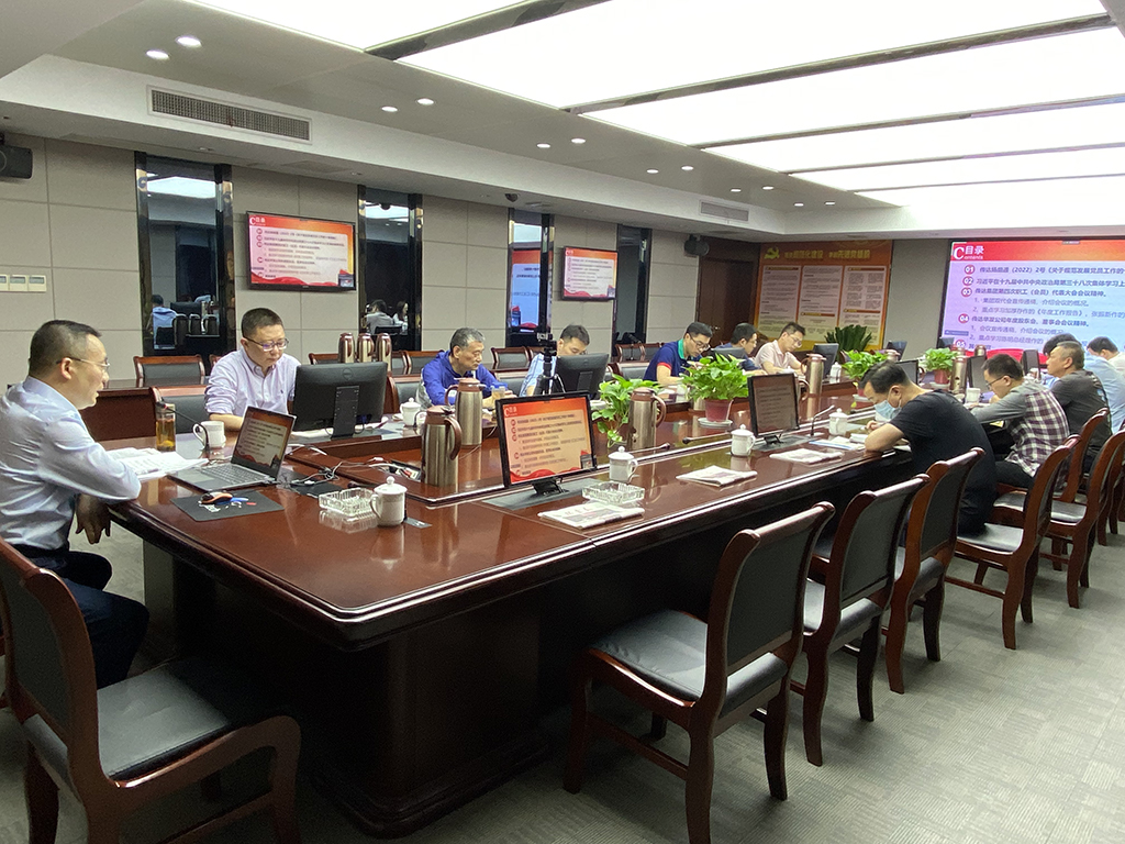 5月5日下午,公司党总支在二楼党员活动室召开党员大会。会议由党总支副书记李浩炜同志主持。后方部门党员同志参加会议。同时由于前方正处于生产高峰,前方项目部党员同志则通过线上视频方式参加会议。
