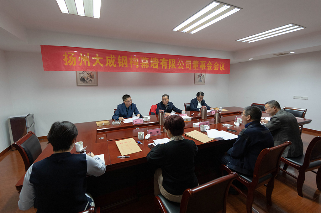 10月26日下午,扬州大成钢构幕墙有限公司在华发公司三楼会议室召开董事会会议。会议由扬州大成钢构董事长兼总经理耿杰主持,全体股东、董事出席会议,监事列席会议。