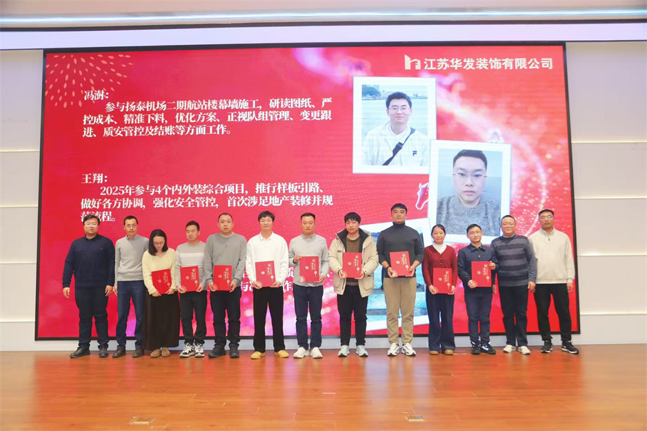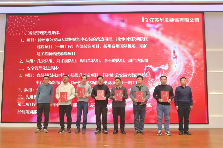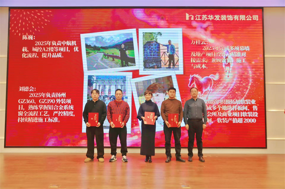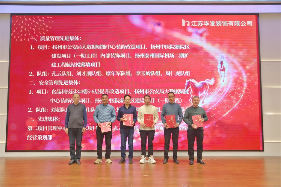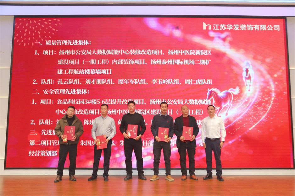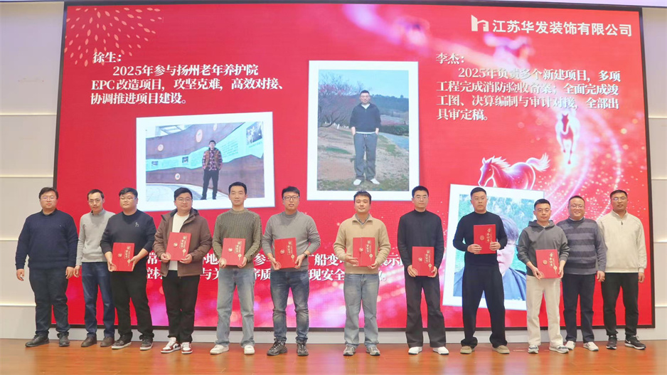 新春团拜会在热烈的掌声中拉开序幕,公司董事长耿杰发表新年贺词。致辞中,耿杰董事长全面回顾了2025年公司在建筑装饰行业深度调整的严峻挑战下,取得的来之不易的优异成绩:全年产值、利润双双创下历史新高,成功斩获2项“扬子杯”、2项省标化工地、1项发明专利、3项省级工法等多项荣誉,用实干与坚守书写了华发人的担当。展望2026年,耿杰董事长号召全体员工牢记全市建筑业高质量发展大会上市委书记王进健的嘱托,勇担使命、争当专业市场排头兵,以开拓进取的锐气拓宽经营赛道,以精益求精的态度强化内部管理,同心同德、携手并肩,共同开创华发公司高质量发展的崭新局面。