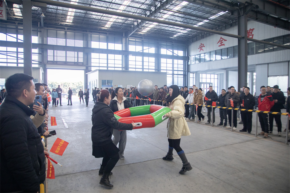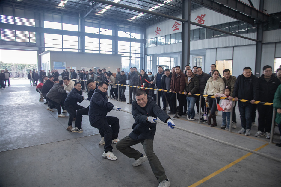 冬日的生产基地寒意渐浓,但活动当日的气氛热烈异常。在众星捧月项目中,各组队员你追我赶、奋力奔跑;同舟共济项目队员们齐心协力、步伐一致;火车头竞速项目队员们动作敏捷,积极配合;蒙眼踏步项目运动与娱乐完美结合,让在场观众捧腹大笑;抢水大战项目则考验反应能力;拔河比赛则考验了力量与耐力,各队员齐心协力,力拔山河,现场气氛拉满。