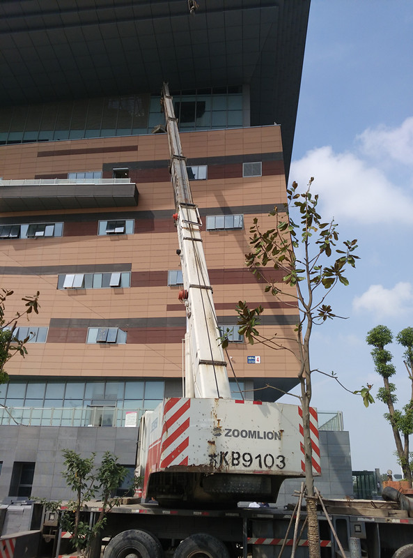 而在施工工艺上这一工程基本上都是常规做法,但摆在项目部面前最大的难题就是材料运输。在现场,电梯未安装到位,所有材料从楼梯上抬上来,不可能,而且最大尺寸铝材是1.2m*2.4m,就更加不可能了。怎么办?项目部通过现场的仔细查勘,最终选择用吊车进行垂直运输。而怎么吊这个问题再一次摆在了他们面前。因为,第一,吊车司机稍有不慎,这对于外装上的陶土板、铝板都是致命的损坏,不能得不偿失;第二,现场安全如何保障,因为整个科技馆工程都处于抢工状态,现场施工人员流动性大,万一有材料坠落,后果不堪想象。对此,徐德兵项目部专门指派陈志强负责,只要有材料运输,必须在现场实时地进行监管,保证不出现任何问题。要知道,徐德兵整个项目部才4个人,足以见得这项工作的重要。正是在这样的吊装方案的指导下,整个现场的材料运输工作在有序地进行,没有给有限的工期带去一点阻碍、没有给已安装的陶土板幕墙和铝板带去致命损伤、没有发生一起安全事故。其中,项目部陈志强是全天候保障,只要有材料到场立即安排吊车进行运输,为此他中午从来没有休息时间。