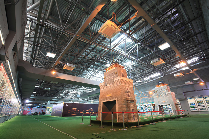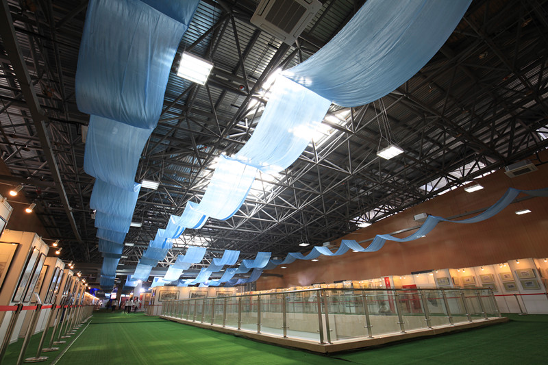 此外,在施工中,由于上海设计单位在内装方案上对具体节点做法没有说明,项目部又要承担深化设计的任务,为此,项目部与设计单位、甲方建立了一个工作微信群,实时地通过图片、视频等形式就某一部位的施工进行讨论,用科技的沟通手段最快速地实现沟通无障碍,保证施工的及时对接。同时,项目部还承担起了现场协调工作,对于垃圾的清理,每天到晚之前必须将垃圾清理到位,为后期工程的施工节省时间;对于现场的保护,尤其是后期布展期间,由于地面铺设的是草皮地毯,而布展工人有时会控制不住抽烟,只要一个烟头掉下来就是一个洞,影响整体美观,因此他们平时巡视时都是拿着手机发现吸烟的及时拍下来,及时与布展单位、甲方沟通,采取强硬措施避免重复发生,等等。