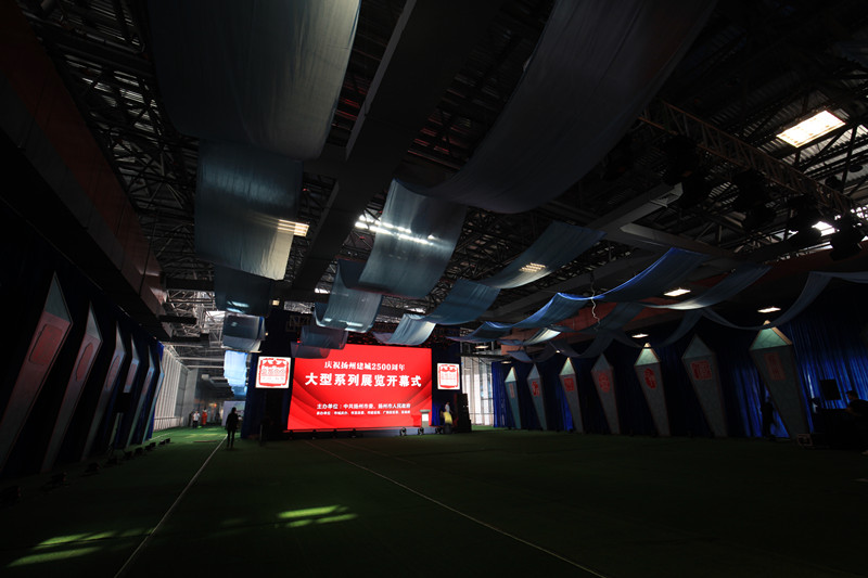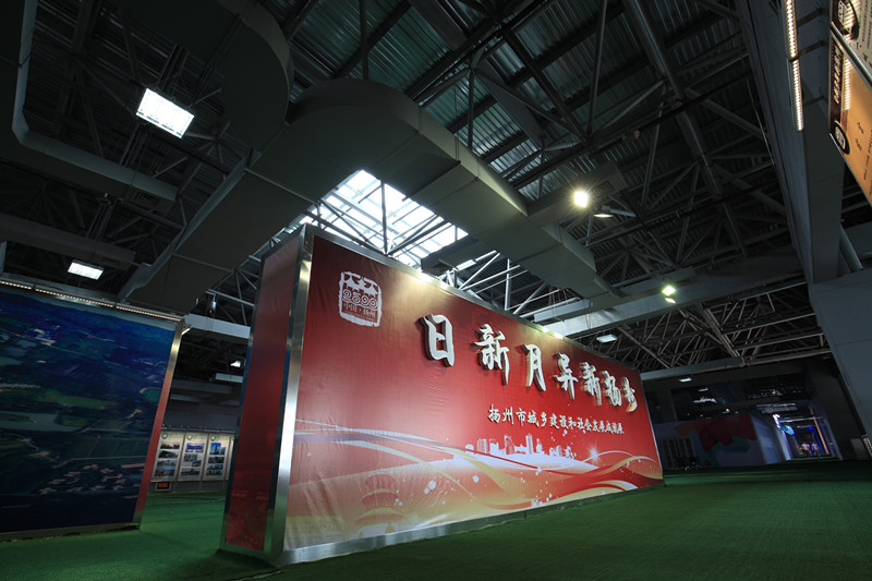 扬州市城乡建设和社会发展成就展,这是一个很大的题目,如何在有效的空间内全方位地展示取得的成就,摆在了设计人员的面前。为此,必须在内容上要饱满、有重点、最突出,在形式上要新颖,让观看者有兴致、有冲击。