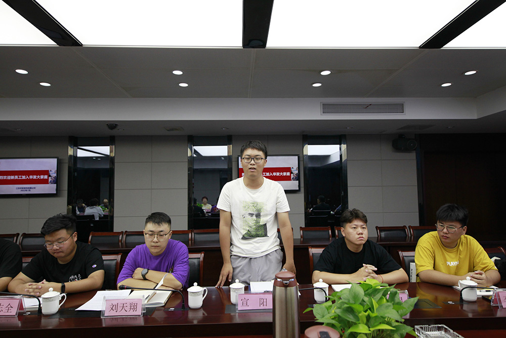 7月19日上午,公司2022届新员工见面会在二楼会议室举行。会议由党总支副书记李浩炜主持,公司董事长耿杰、总经理陈明、副总经理蒋文忠、徐丽敏、赵宏贵、李红雨、总会计师陈莉、设计总监薛爱遐、团支部书记朱明星、人力资源部部长章忠及12名新员工参加会议。