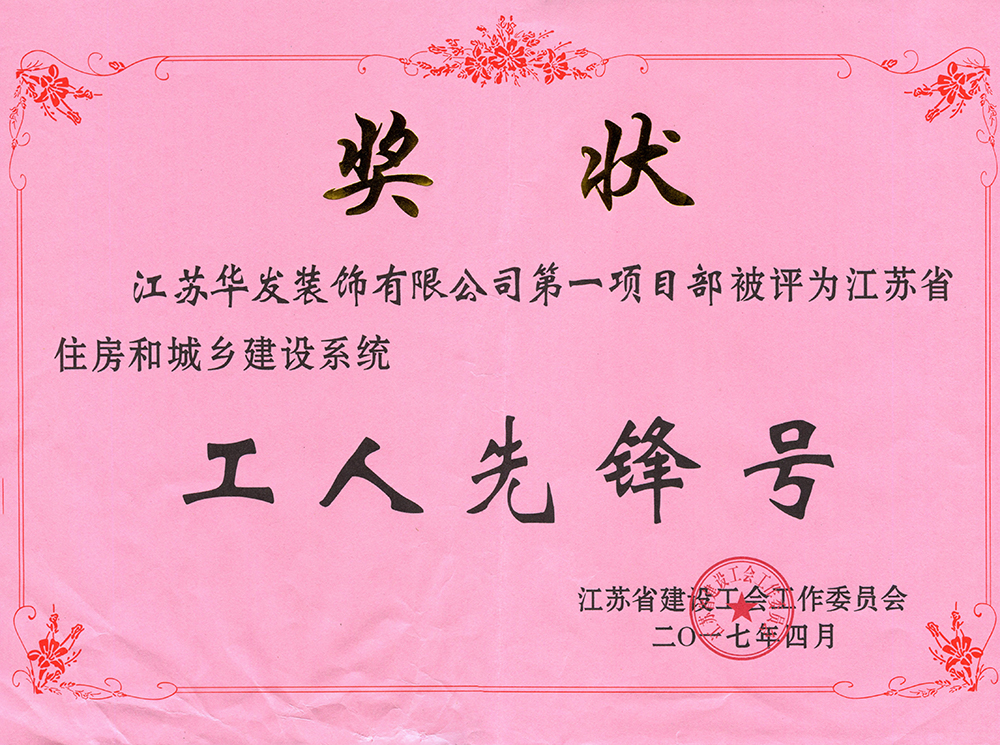 近日,江苏省建设工会工作委员会表彰“江苏省住房和城乡建设系统工人先锋号”,公司第一项目部荣获殊荣,充分肯定了华发公司在城市建设、关爱职工上的成绩。