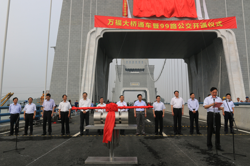 万福大桥不仅是景观桥,还是扬州市区首座双层桥,同时这一将主塔和古建相结合的桥梁在国内桥梁建筑历史上也比较特殊,毫无例外地成为扬州市的重点工程,受到各方关注。江苏省省委副书记、省长李学勇8月17日到万福大桥视察,慰问建设者们;扬州市委书记谢正义、市长朱民阳多次带领四套班子领导到万福大桥视察,询问工程进度情况,现场办公解决困难,高温季节慰问一线施工人员;扬州电视台多次到现场拍摄制作新闻动态,向扬城人民汇报工程进度;扬州日报等报刊也定期刊登建设情况等等。